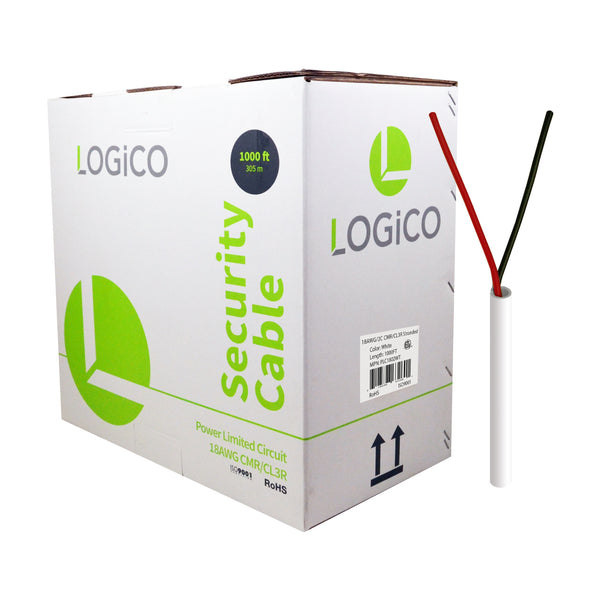 Security/Alarm Wire18AWG/2C BC CMR CL3R: This Stranded Bare Copper CMR cable is perfect for security systems and other low-voltage electrical hookup applications. Use the LOGICO security cable to connect door and window sensors, motion detectors, keypads & other hardwired accessories to your alarm panels.