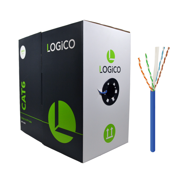 Logico Cat6 UTP Bulk Ethernet Network Cable 550Mhz Pure Copper Riser Blue 1000ft
