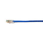 Simplifies twisted pair terminations by allowing the wires to be inserted through the connector and out the front