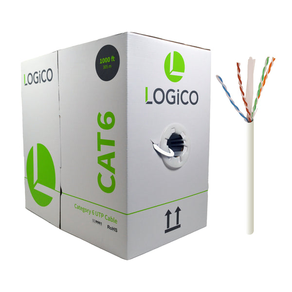 Logico Cat6 1000FT Bulk White Communication UTP Cable Ethernet Network 1000 White Pull Box